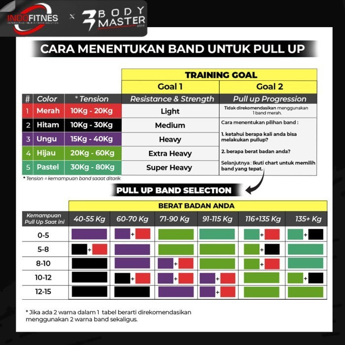 Pria 170cm/70kg tidak bisa pull up sama sekali, saran pakai Hijau/ungu, jika bisa pull up 2x bisa pakai hitam