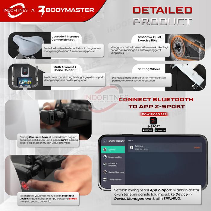 Bodymaster S50i Smart Spinning Bike - Kenyamanan dan kesan natural dalam Setiap Putaran