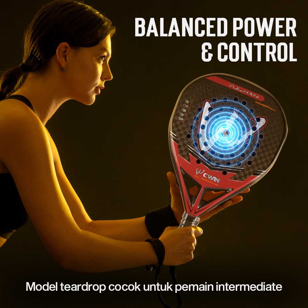 CWIN VULKAN Raket Padel Teardrop 12K Carbon Fiber 3.8cm Thickness 365g - 5025