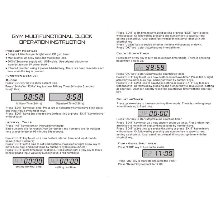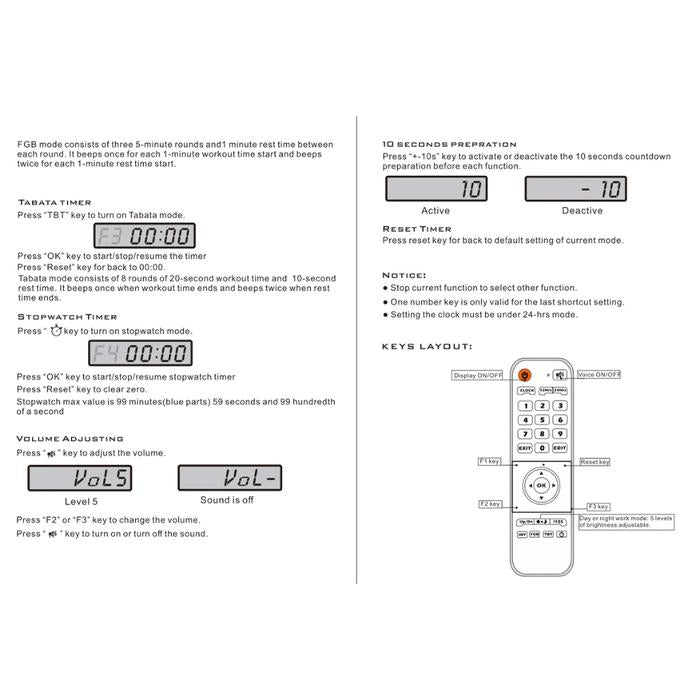 Stopwatch akurat hingga seperseratus detik. Penghitung waktu mundur dengan pengaturan preset cepat. Timer memiliki program khusus untuk CrossFit interval training dan WODs saat pertandingan semakin memburuk, adan Tabata. Timer dapat menyimpan hingga tujuh program khusus.
